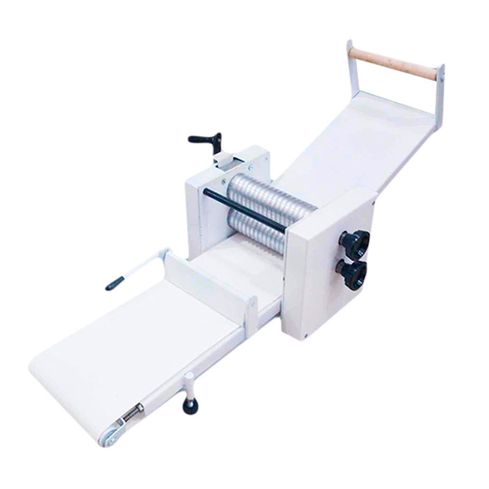 Máquina de cortadora a granel. Posee moldes intercambiables para poder elaborar: Panchos, grisines, coquitos, talitas, etc. Construida en acero inoxidable. Cabezal de aluminio fundido. Rodillos macizos de aluminio montados sobre rulemanes.